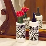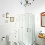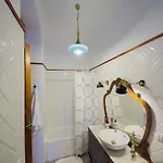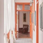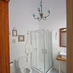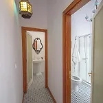 Olhando para pátio interior, alguns quartos no o hotel Aminta Home oferecem piso ladrilhado com armário. As unidades têm casas de banho privadas com secador de cabelo e chuveiro de corrediça.